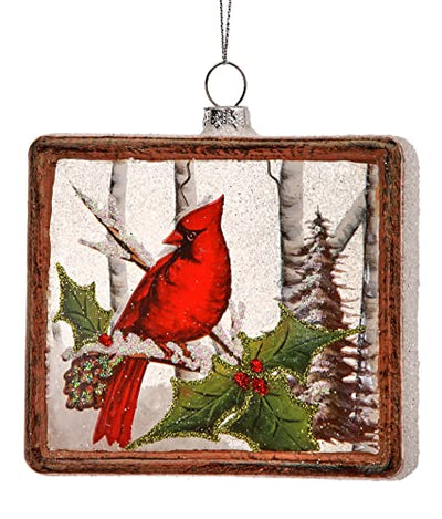 Regency International Cardinal on Branch Hanging Ornament, 4-inch Square, Glass, Red and Green