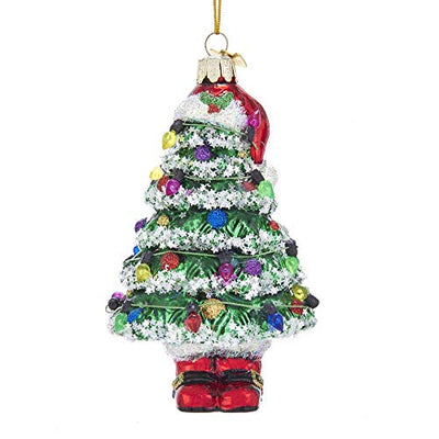 Kurt Adler Noble Gems Christmas Tree with Santa Hat and Boots Glass Hanging Ornament, 5.25 inches Height