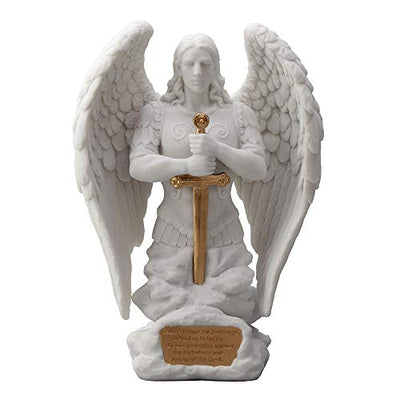 Unicorn Studio Veronese Design 9.1 Inch Saint Michael Prayer Archangel Monument Marble White Golden Finish Angel Statue