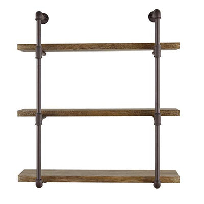 Danya B. Decorative Floating 3-Tier Wall Mounted Hanging Pipe Shelves - Rustic, Urban and Industrial Décor,Wall Mounted Shelf - Perfect for Living Room,Dining Room,Kitchen,Bedroom,Nursery or Office, Brown