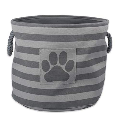 DII Design Bone Dry Stripes with Paw Patch Collapsible Polyester Pet Storage Bin, Round Small-12 x 12 x 9, Gray