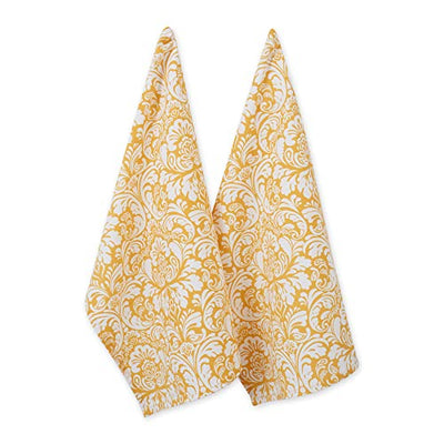 DII Cotton Damask Kitchen Dish Towels, 28 x 18 Set of 2, Low Lint Decorative Tea Towel for Everyday Cooking and Baking-Mustard