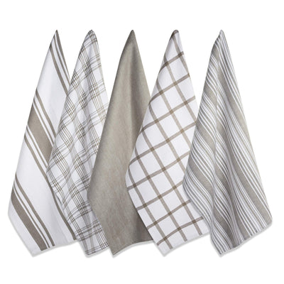 DII Assorted Woven, Kitchen Dishtowel Set, 18x28, Brown, 5 Piece