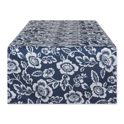 DII Indoor/Outdoor Tabletop Collection Floral, Flannel Backed, Table Runner, 14x72, Nautical Blue