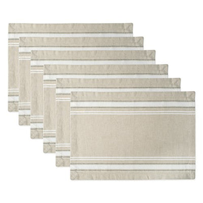 DII Design French Stripe Tabletop Collection Farmhouse Style Placemat Set, 13x19, Taupe/White, 6 Piece
