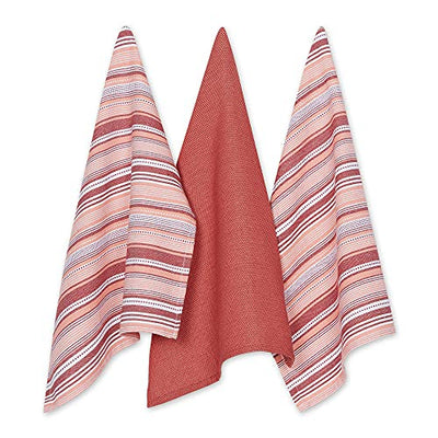 DII Everyday Dishtowel Collection Urban Stripe, 20x30, Barn Red, 3 Piece