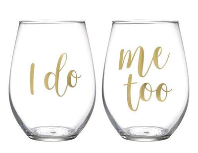 Creative Brands Slant Collections Set of 2 Stemless Wine Glasses, 20-Ounce, I Do/Me Too