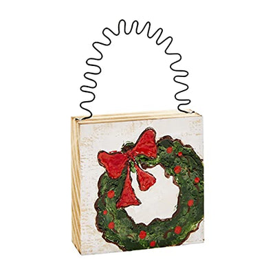Mud Pie Wreath Block Ornament, 3 1/2-inch