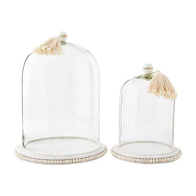 Mud Pie Large Beaded Base Decorative Cloche Set of 2, White, Small 11 1/2" x 9" dia, Large 15 1/2" x 12" dia