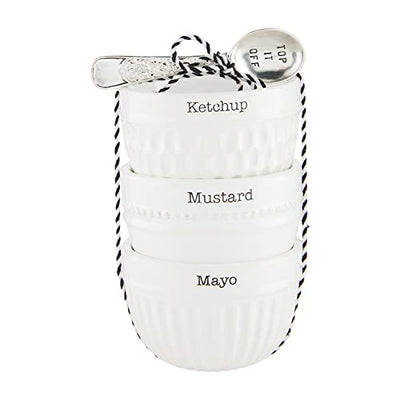 Mud Pie Condiment Set, Dip 2" x 3" Diameter, Spoon 3.5", Dolomite