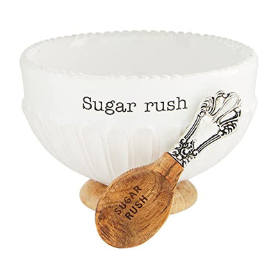 Mud Pie Sugar Candy Dish Set, Bowl 3" x 4.5", Scoop 3.5", Dolomite