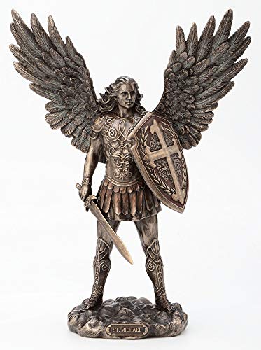 Unicorn Studio Veronese Design 11 Inch Saint Michael Archangel with Battle Shield and Sword Antique Bronze Finish Angel Statue
