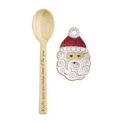 Mud Pie Stoneware Christmas Spoon Rest Set,Spoon rest measures 3.65" x 5.75" wooden spoon 11" long, Santa