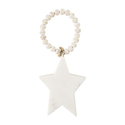 Mud Pie White Marble Christmas Ornament, Star, 4" x 3"