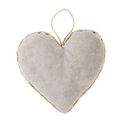 Mud Pie Neutral Velvet Beaded Christmas Heart Ornament, 5.5” x 6”