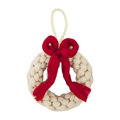Mud Pie Wool Wreath Christmas Ornament, White, 7" x 6"