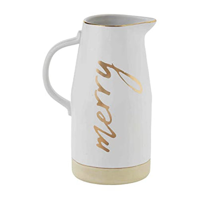 Mud Pie Merry Christmas Pitcher, Gold, 46 oz, Stoneware