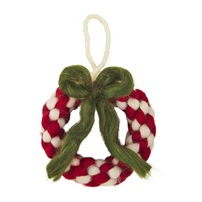 Mud Pie Wool Wreath Christmas Ornament, Red, 7" x 6"