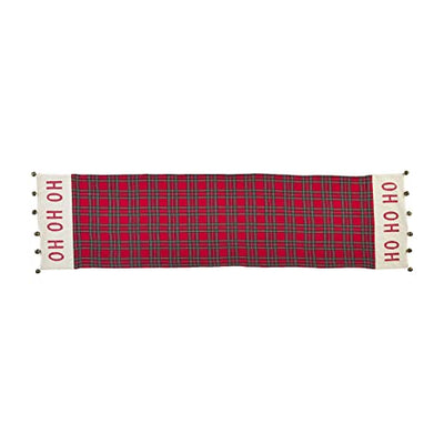 Mud Pie Tartan Christas Table Runner with Bells, 72" x 18", Red