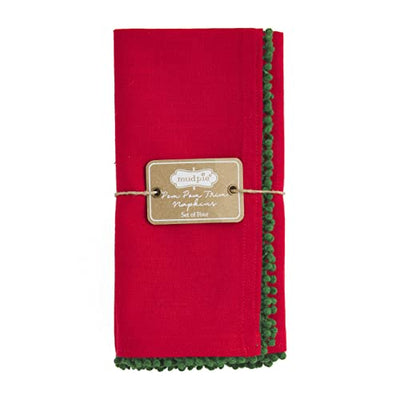 Mud Pie Cotton Dinner Napkin Set of 4 with Pom Trim,Red