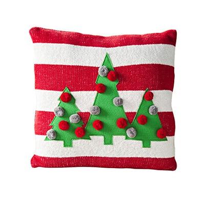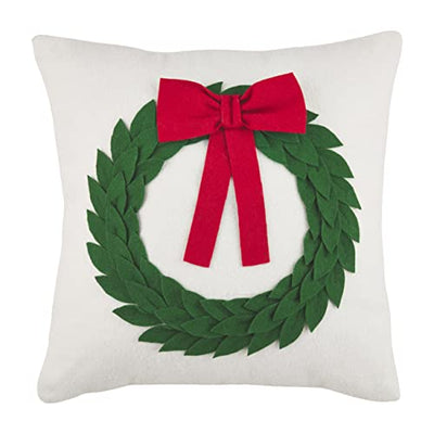 Mud Pie Christmas Felted Wreath Pillow, 18" x 18", Cream