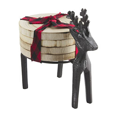 Mud Pie Wood Slab Coasters in Deer Holder, 4" Diameter,Natural