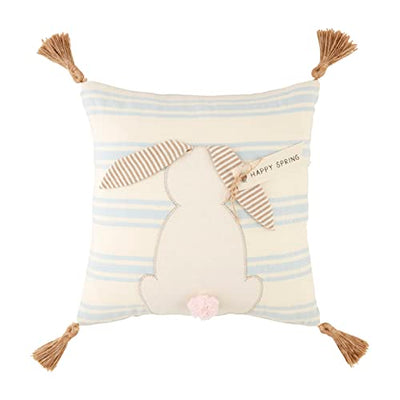 Mud Pie Bunny Striped Cotton Pillow, 16" x 16", Happy