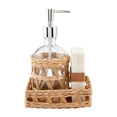 Mud Pie Woven Tray And Soap Pump Set, 5 1/2-inch