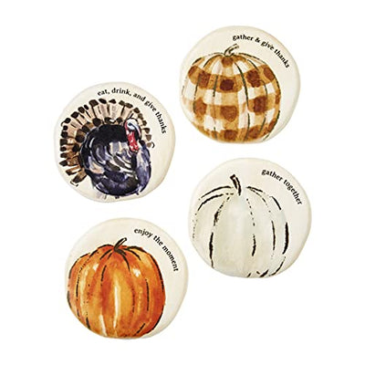 Mud Pie Thanksgiving Coaster and Holder Set, White, 4-inch Diameter