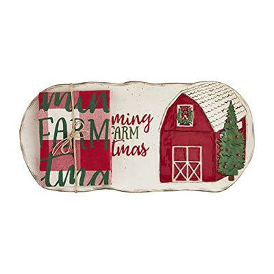 Mud Pie Farm Christmas Hostess Tray And Towel Set, 15-inch