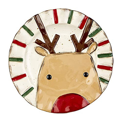 Mud Pie Reindeer Christmas Salad Plate, 8-inch Diameter