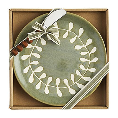 Mud Pie Painted Leaf Cheese Set Plate, Green, 8.5-inch Diameter