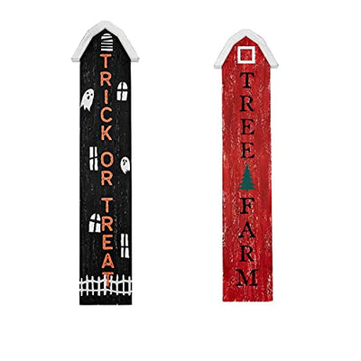 Mud Pie Reversible Hallowen and Christmas Sign, Black and Red, 33" x 6"