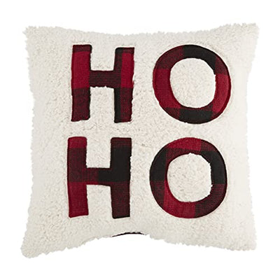 Mud Pie Fuzzy Christmas Throw Pillow, Ho Ho, 18 x 18 inch, Cotton