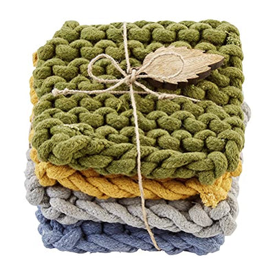Mud Pie Marble Edge Coaster Set, Silver, 4" x 4"