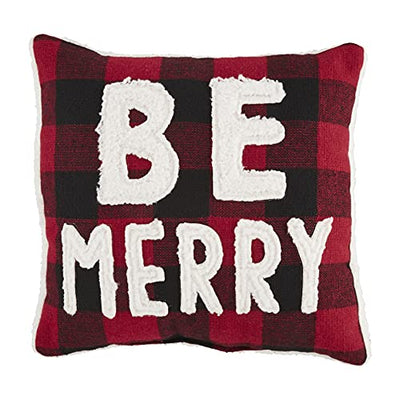 Mud Pie Fuzzy Christmas Throw Pillow, Be Merry, 18 x 18 inch, Cotton