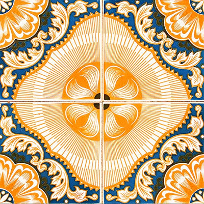 Tile Stickers by Mi Alma 24 pcs Talavera Wall Stencils Wall Stickers Peel and Stick Easy Application – Ideal for Bathroom, Kitchen Wall Tile Decals (8x8 Inch, Orange Flower H1)