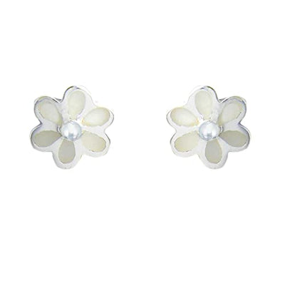 Mya Bella Creations Silver Flower White Mop Stud Earrings, Women Jewelry Accessories