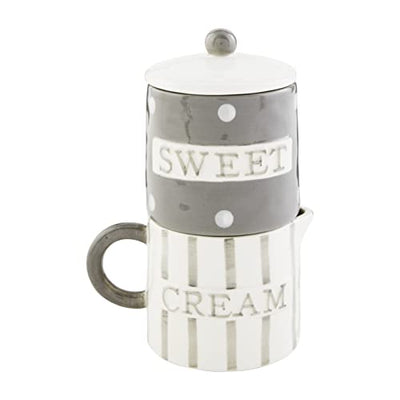 Mud Pie Happy Cream and Sugar Set, 6" x 4 1/2", Gray/White