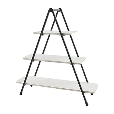 Mud Pie Metal Tiered Server, White, 22.5" x 22.5", Mango Wood and Marble