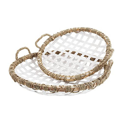 Mud Pie Woven Wood Tray Set, White, Small, 22-inch Diameter