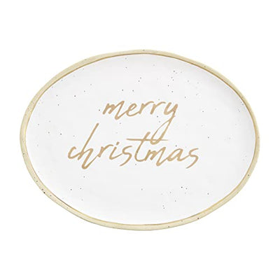 Mud Pie Stoneware Gold Merry Christmas Platter, 16 1/4-inch