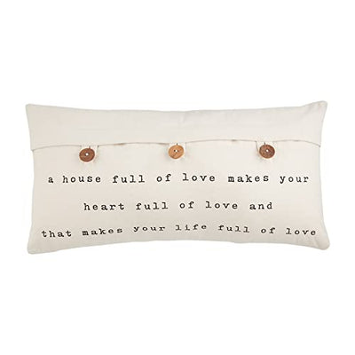 Mud Pie, House Full, Home Button Pillow, 20" x 10"