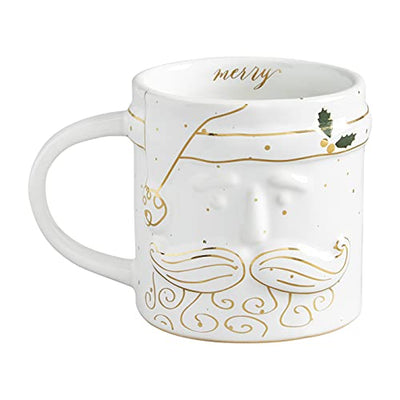 Mud Pie Gold Mus Pie White Santa Mug, 10 oz