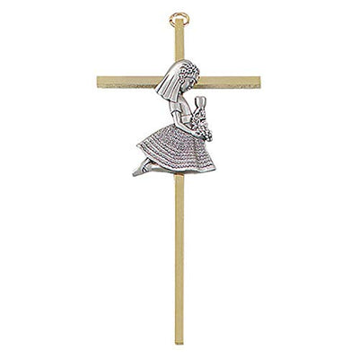 Christian Brands Gold Toned aand Pewter First Communion Decorative Hanging Wall Cross for Girls, 7 Inch