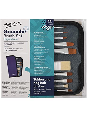 Mont Marte Mixed Bristle Gouache Brush Set in Wallet (11pc)