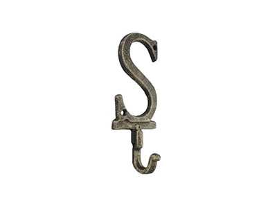 Hampton Iron HANDCRAFTED NAUTICAL D‚àö√¢COR Rustic Gold Cast Iron Letter S Alphabet Wall Hook 6"
