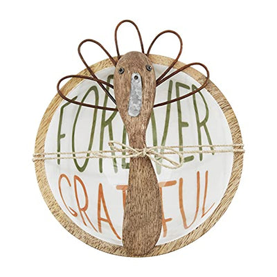 Mud Pie Thanksgiving Enamel Set, bowl 3" x 5" dia | spreader 6 1/4", Forever Thanks