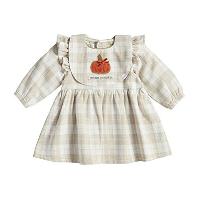 Mud Pie Baby Girls' Plaid Dress and Bib Set, Tan, 9-12 Months