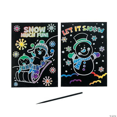 Fun Express Magic Color Scratch Snowman Ornaments for Kids - Makes 24, Includes 12 Scraters - Christmas and Winter Crafts for Preschool, Kindergarden and Kids